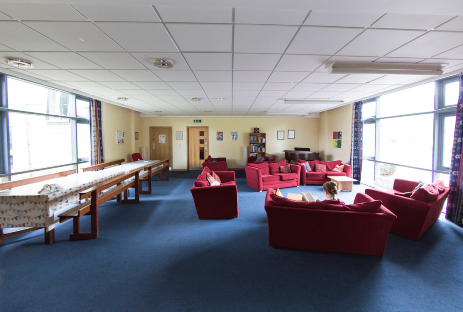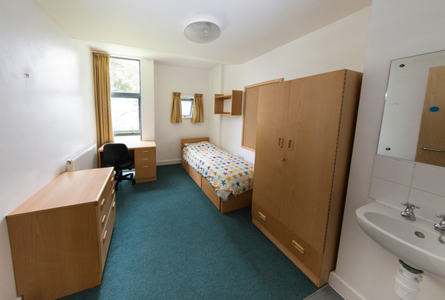 Spavaonice koje škola nudi su standardne sobe sa 1 ili 2 ležaja i kupatilom. Postoji i nekoliko soba sa 4–8 kreveta. U ponudi je puni pansion, a na zahtev je dostupan i jelovnik za vegetarijance ili drugačiju ishranu. Polaznici kursa mogu objedovati u velikoj trpezariji sa obeležjima gotičke arhitekture.